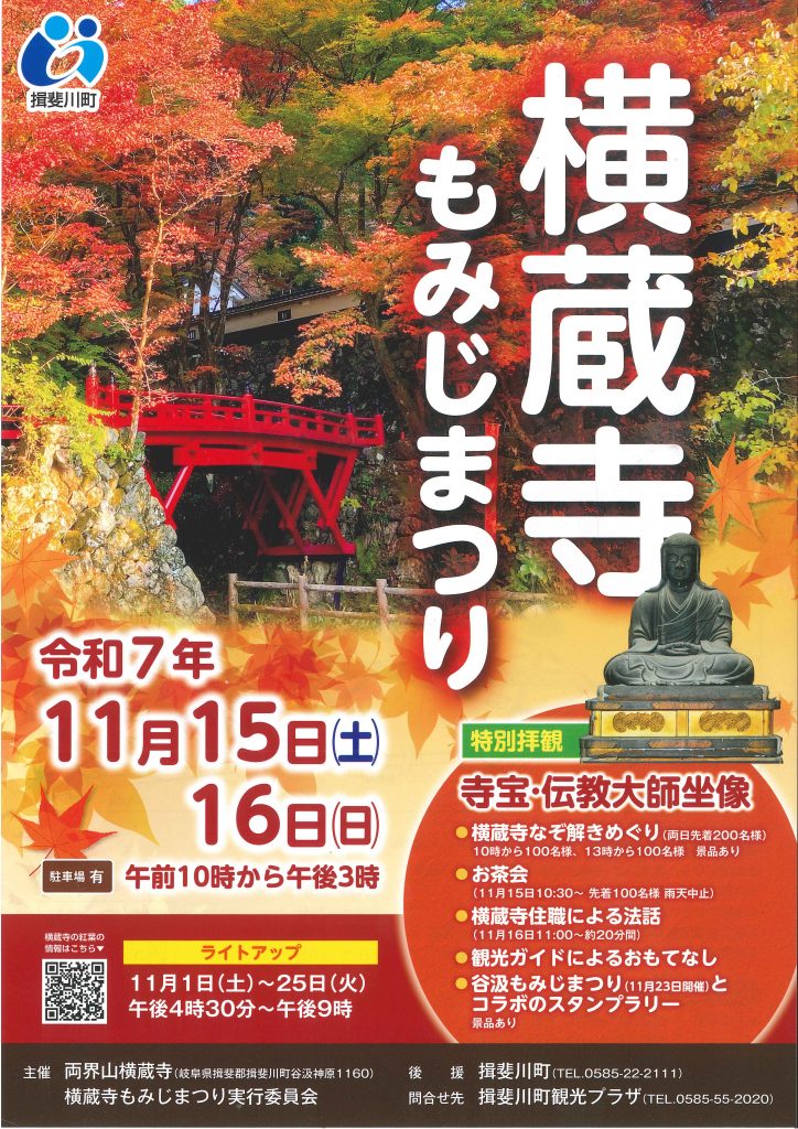 美濃の正倉院といわれる紅葉の名所の両界山横蔵寺で、横蔵寺もみじまつりが開催されます。